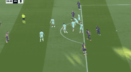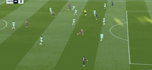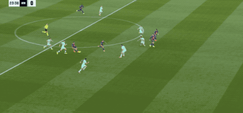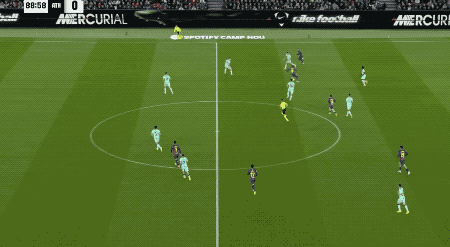 上半场结束,巴萨2-0暂时领先。下半场开始只有4分钟,巴萨前场持续施压完成抢断。