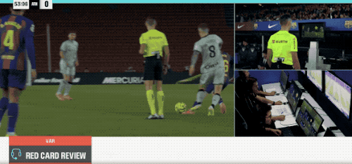 落后的毕尔巴鄂球员出现情绪问题,桑谢特背后出脚,气急败坏使出全力踢在费尔明的腿上,VAR介入,裁判取消黄牌,直接向桑谢特出示红牌。