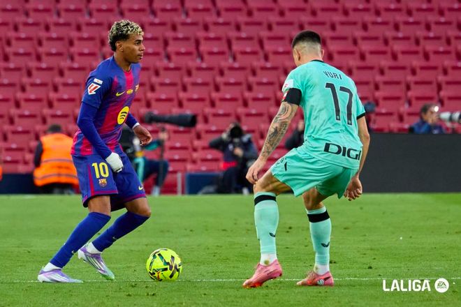 第18分钟,巴尔德送出妙传,费尔明神级跑位后的单刀射门被乌奈·西蒙挡出,奥尔莫的补射遗憾打高。